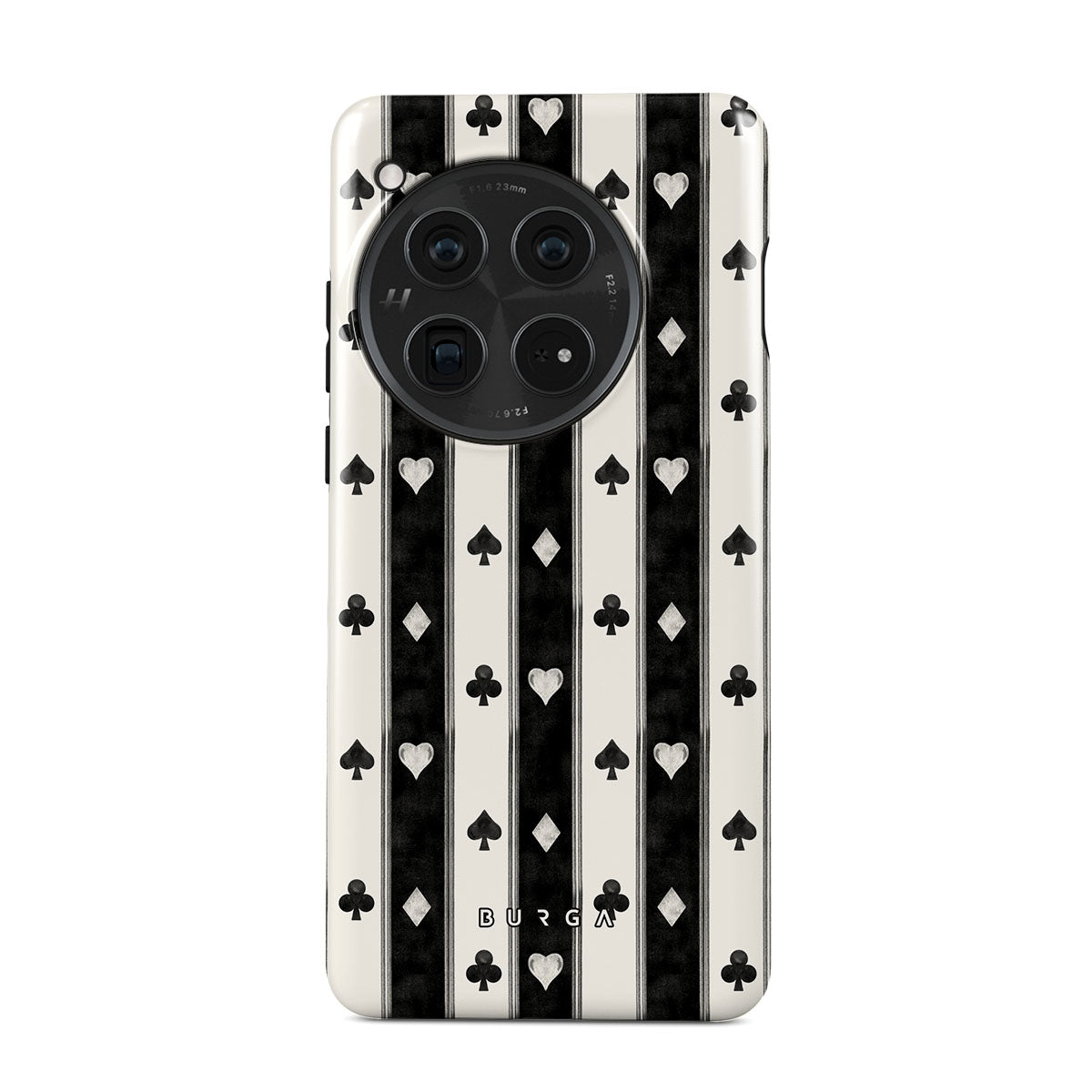 Questo design include: strisce nere e bianche, cuori, semi delle carte, stile vintage