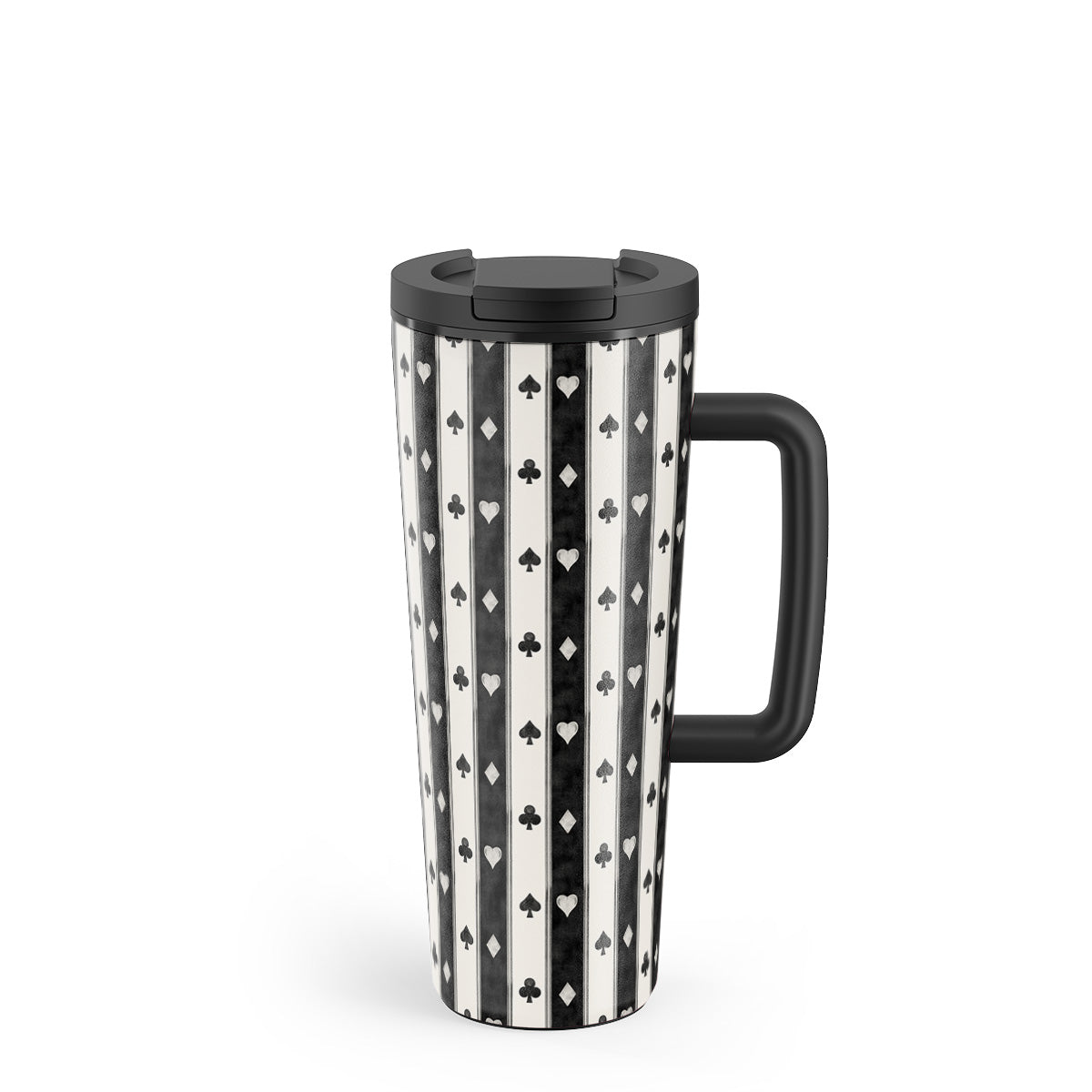 Questo design include: strisce nere e bianche, cuori, semi delle carte, stile vintage