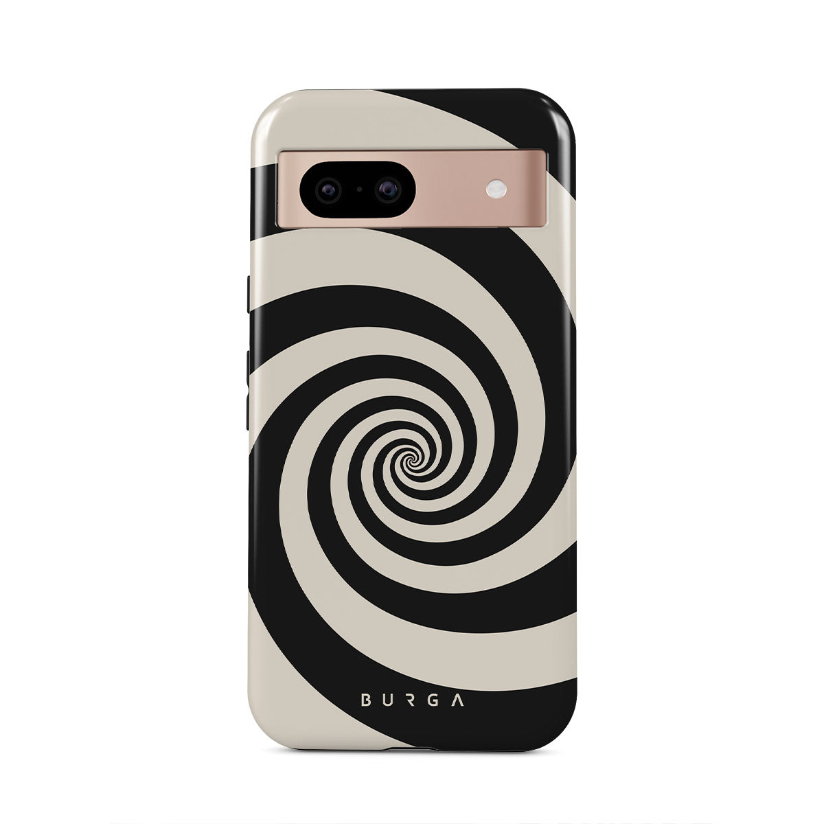 Questo design include: spirale bianca e nera, motivo ipnotico