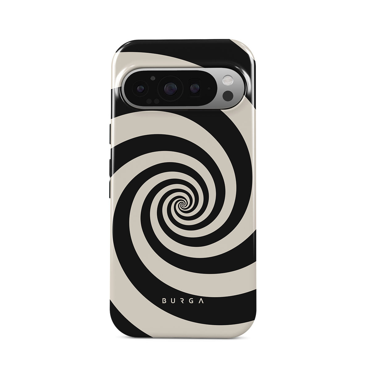 Questo design include: spirale bianca e nera, motivo ipnotico