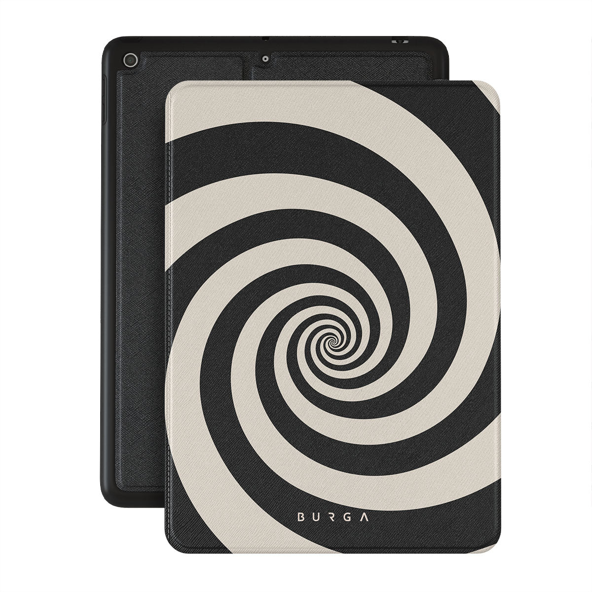 Questo design include: spirale bianca e nera, motivo ipnotico