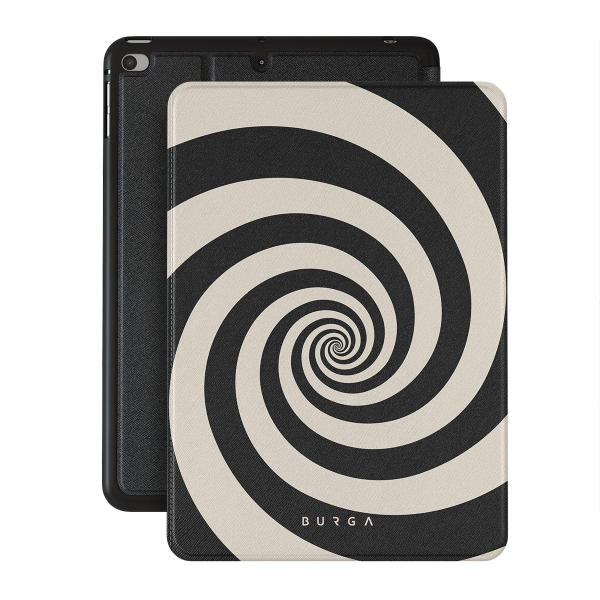 Questo design include: spirale bianca e nera, motivo ipnotico