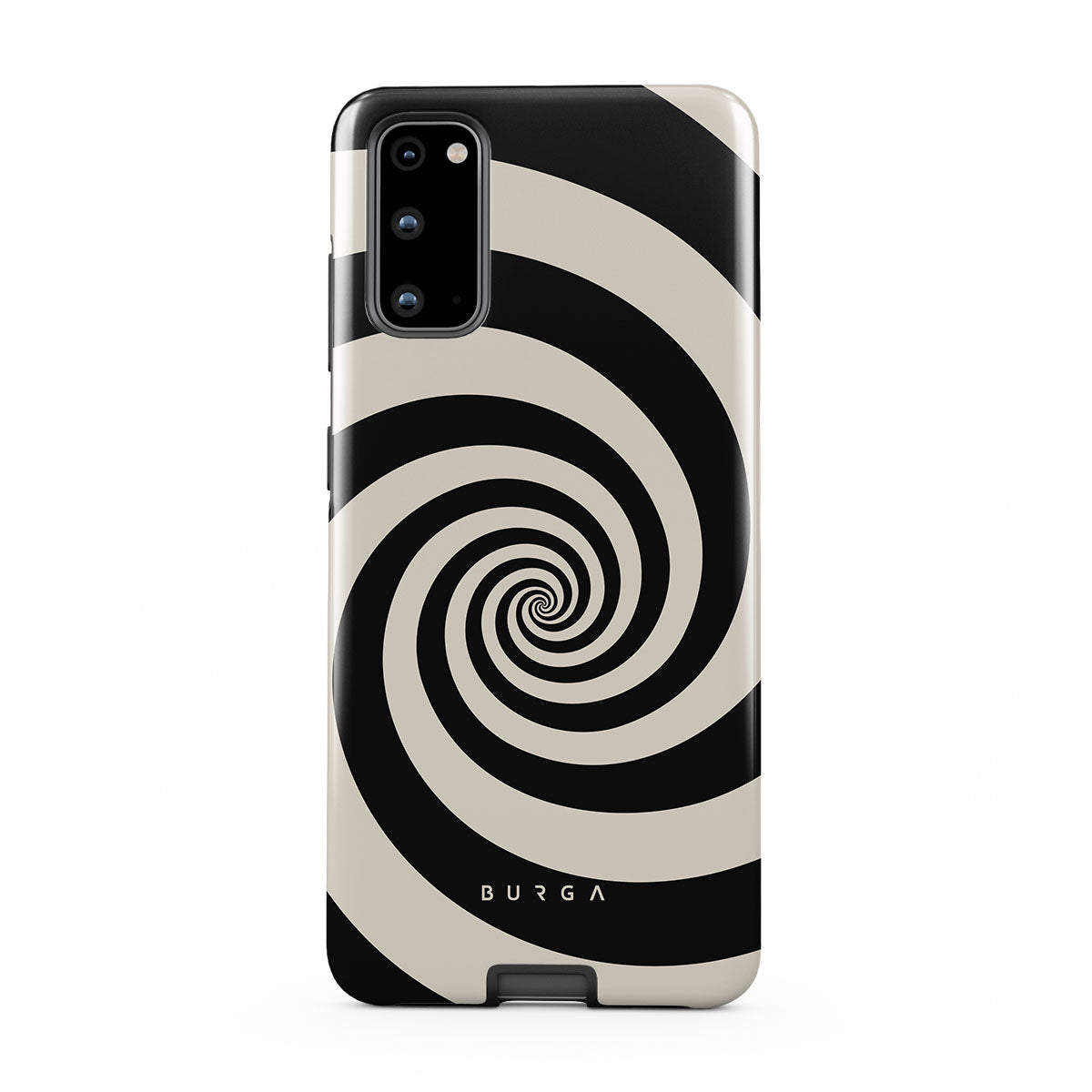Questo design include: spirale bianca e nera, motivo ipnotico