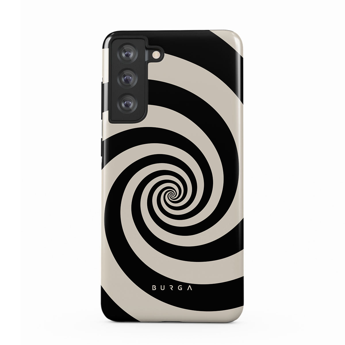 Questo design include: spirale bianca e nera, motivo ipnotico