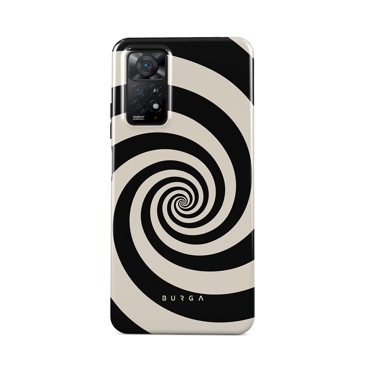 Questo design include: spirale bianca e nera, motivo ipnotico