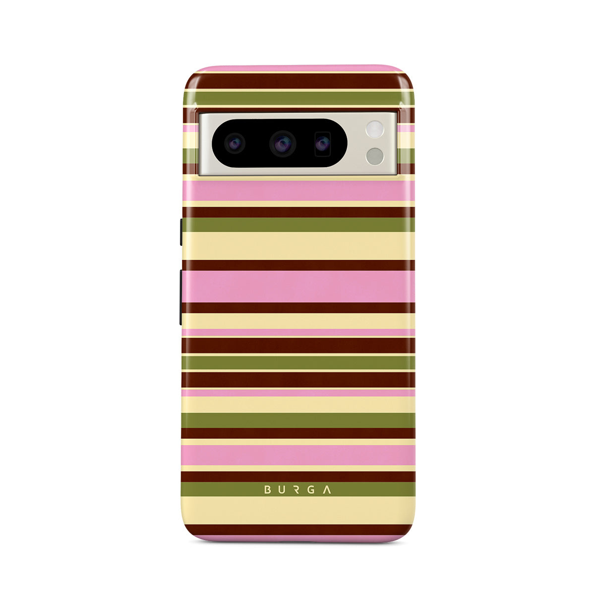 Questo design include: strisce pastello in rosa, giallo e verde, motivo estivo
