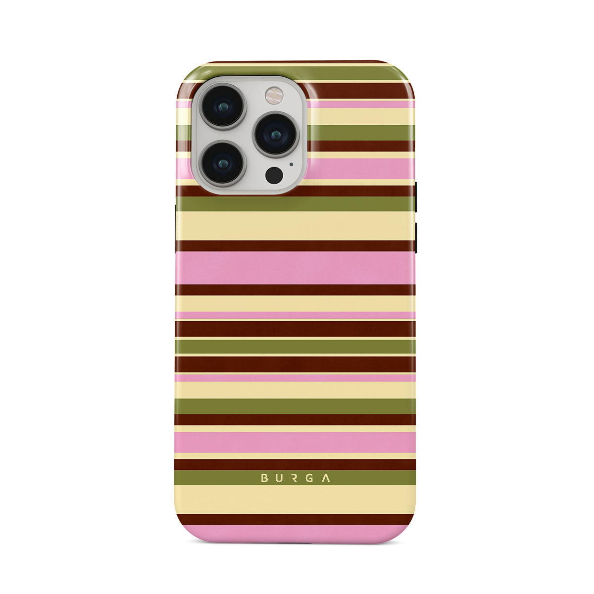 Questo design include: strisce pastello in rosa, giallo e verde, motivo estivo