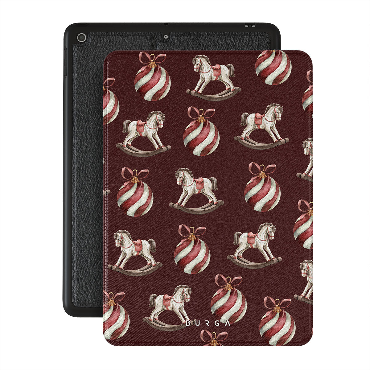 Elementi distintivi: cavallucci a dondolo, palline, rosso, decorazione natalizia