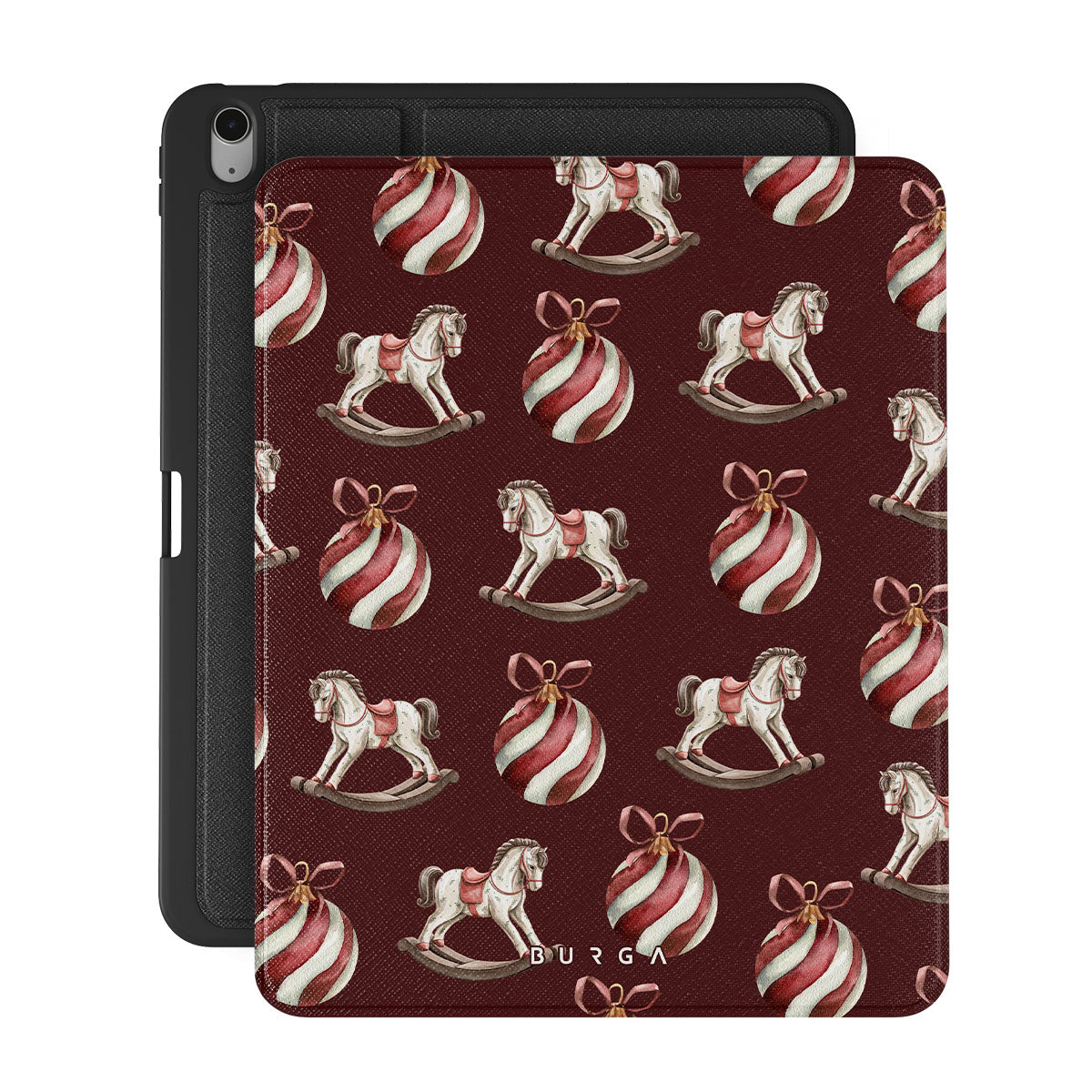 Elementi distintivi: cavallucci a dondolo, palline, rosso, decorazione natalizia