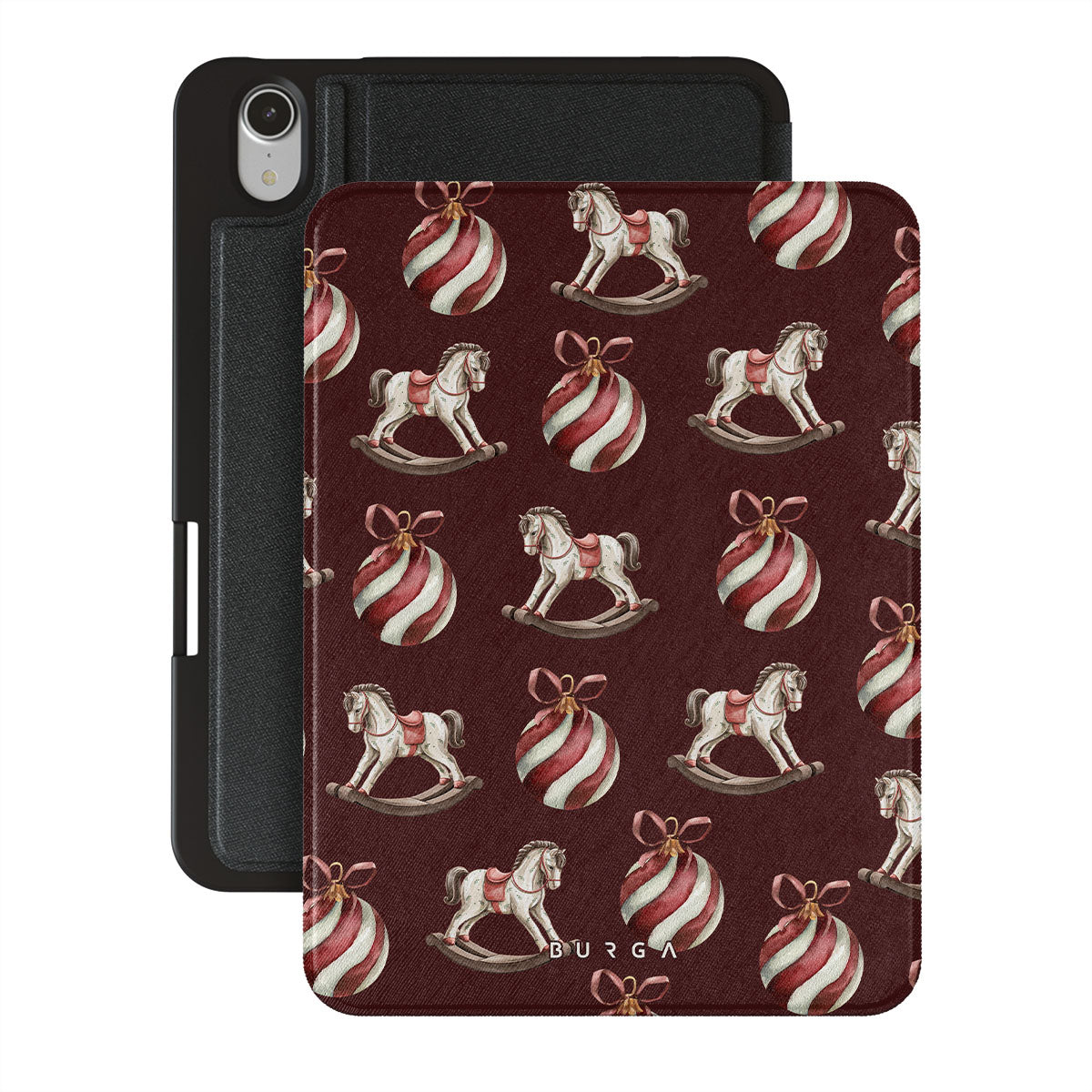Elementi distintivi: cavallucci a dondolo, palline, rosso, decorazione natalizia