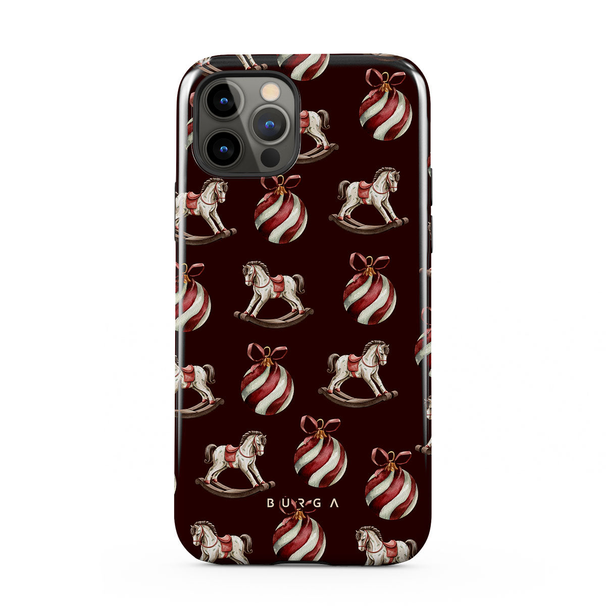 Elementi distintivi: cavallucci a dondolo, palline, rosso, decorazione natalizia