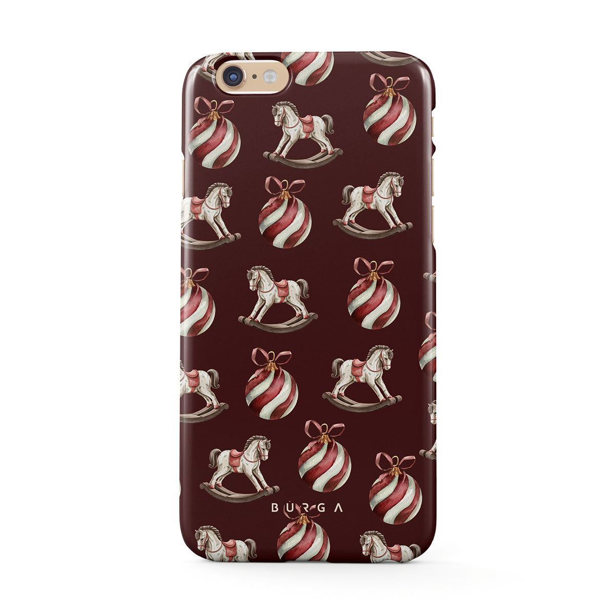 Elementi distintivi: cavallucci a dondolo, palline, rosso, decorazione natalizia