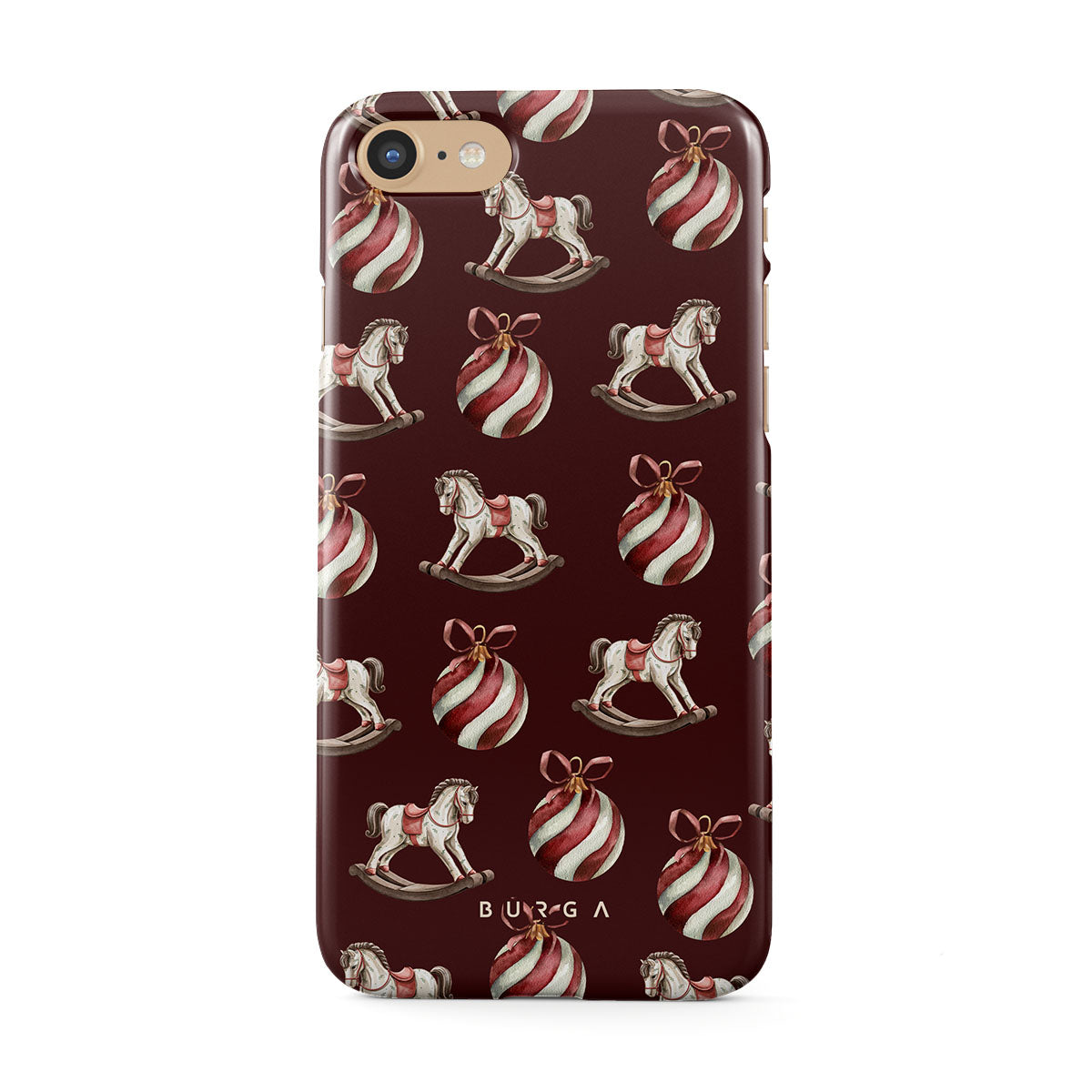 Elementi distintivi: cavallucci a dondolo, palline, rosso, decorazione natalizia