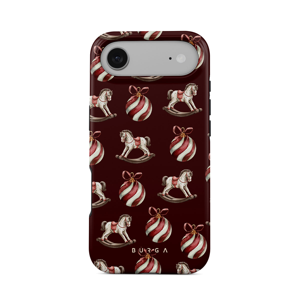 Elementi distintivi: cavallucci a dondolo, palline, rosso, decorazione natalizia
