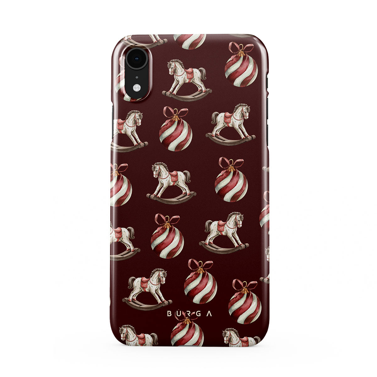 Elementi distintivi: cavallucci a dondolo, palline, rosso, decorazione natalizia