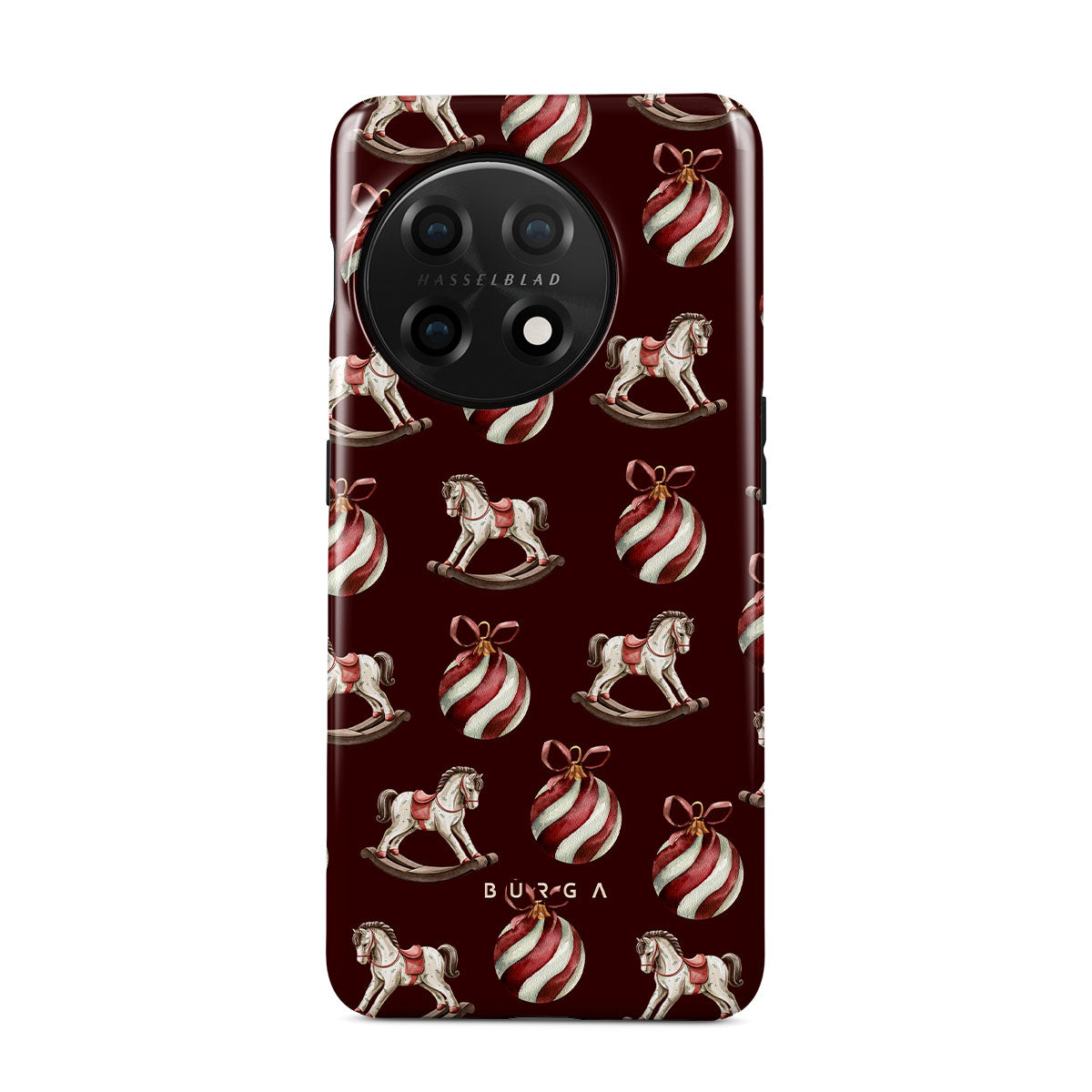 Elementi distintivi: cavallucci a dondolo, palline, rosso, decorazione natalizia