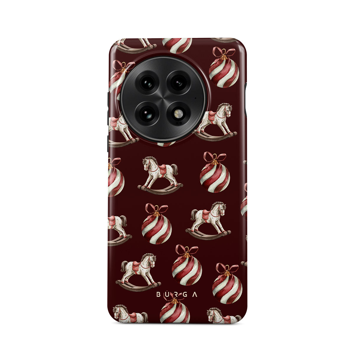 Elementi distintivi: cavallucci a dondolo, palline, rosso, decorazione natalizia
