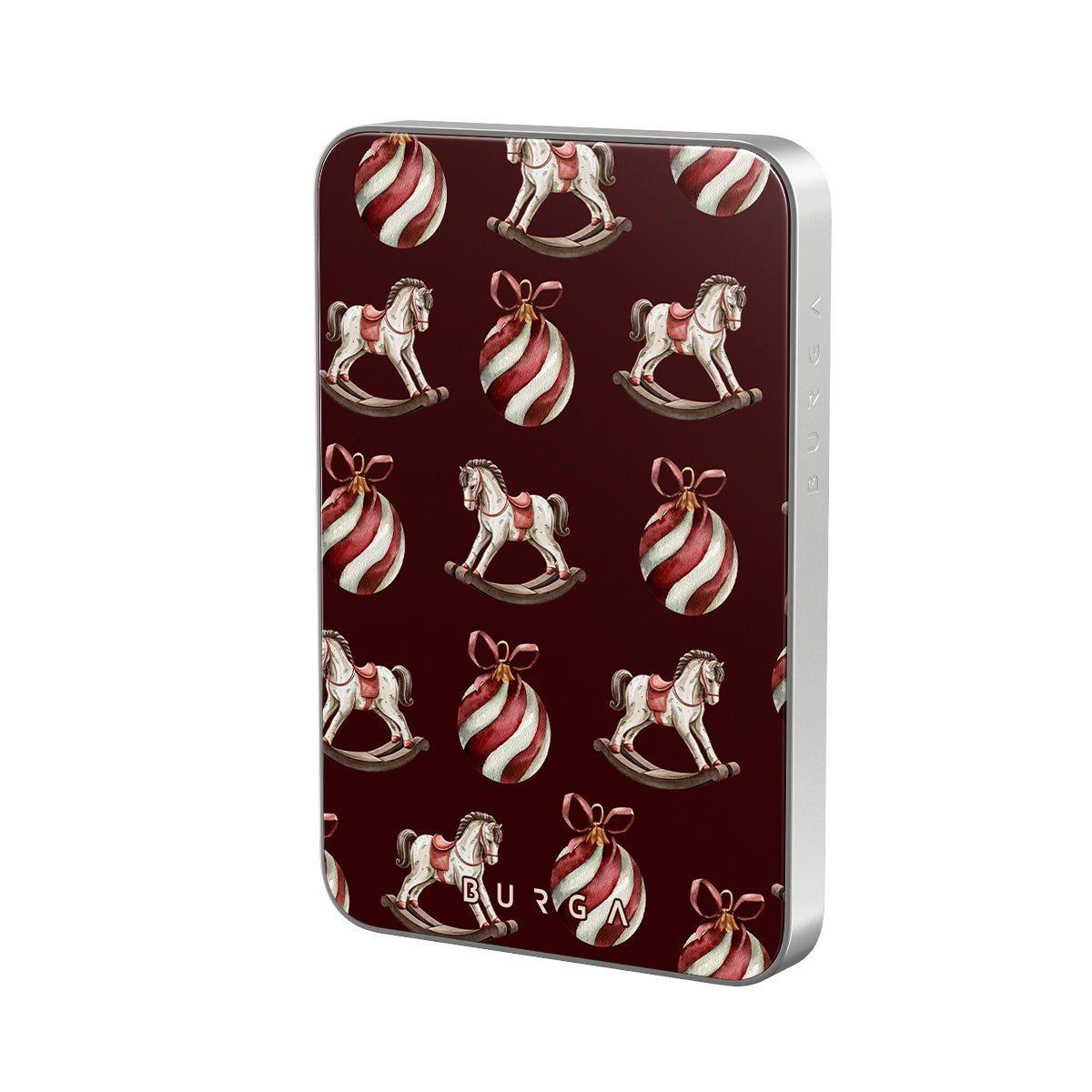 Elementi distintivi: cavallucci a dondolo, palline, rosso, decorazione natalizia