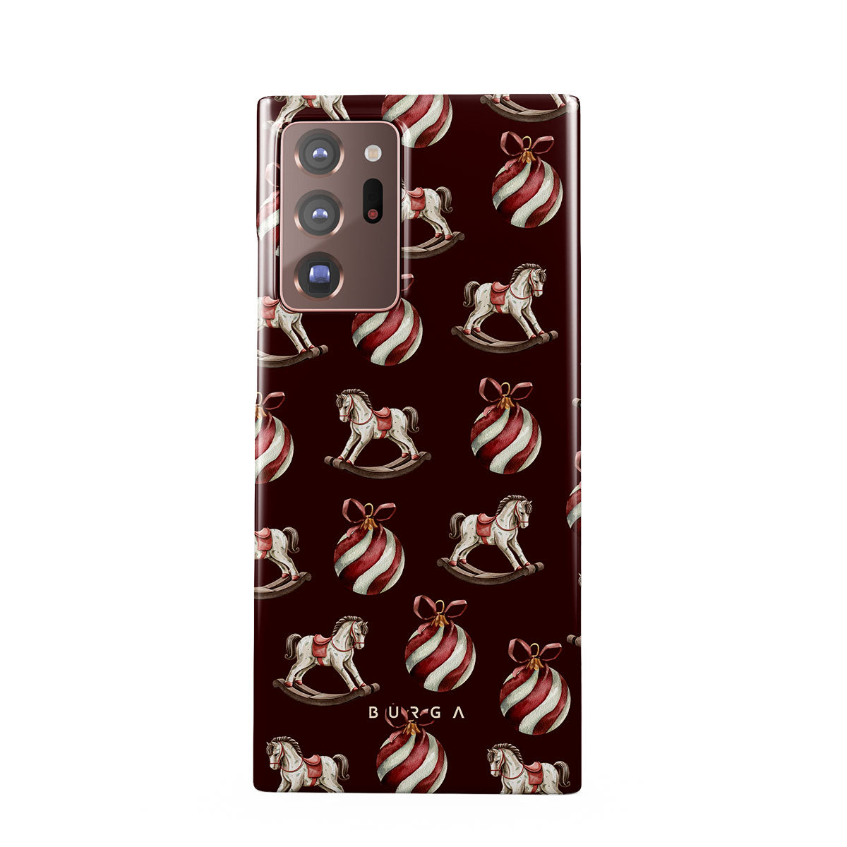Elementi distintivi: cavallucci a dondolo, palline, rosso, decorazione natalizia