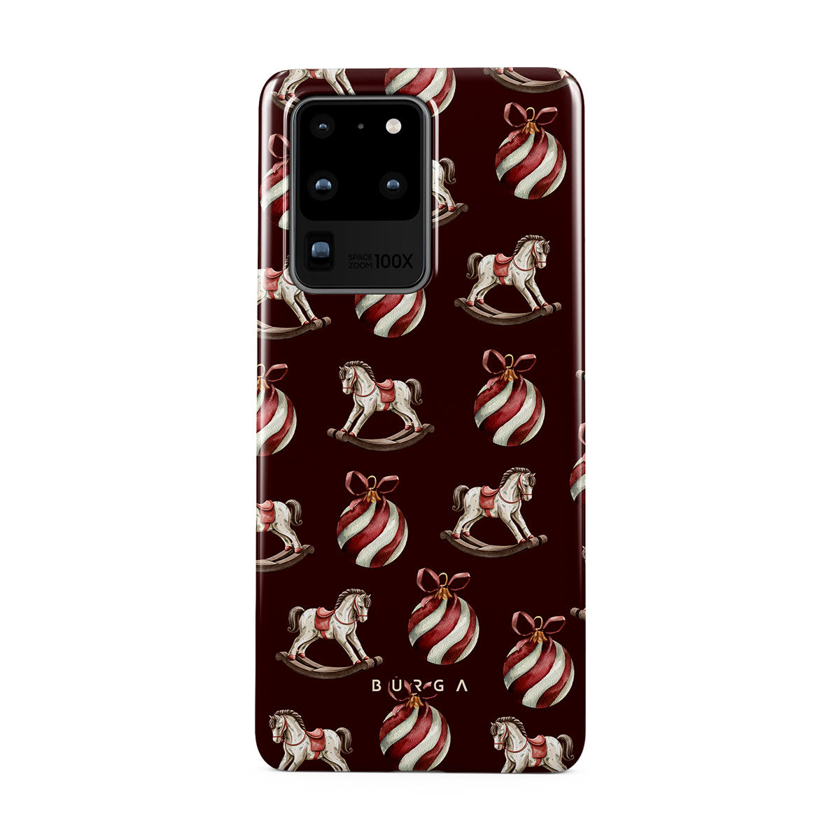 Elementi distintivi: cavallucci a dondolo, palline, rosso, decorazione natalizia