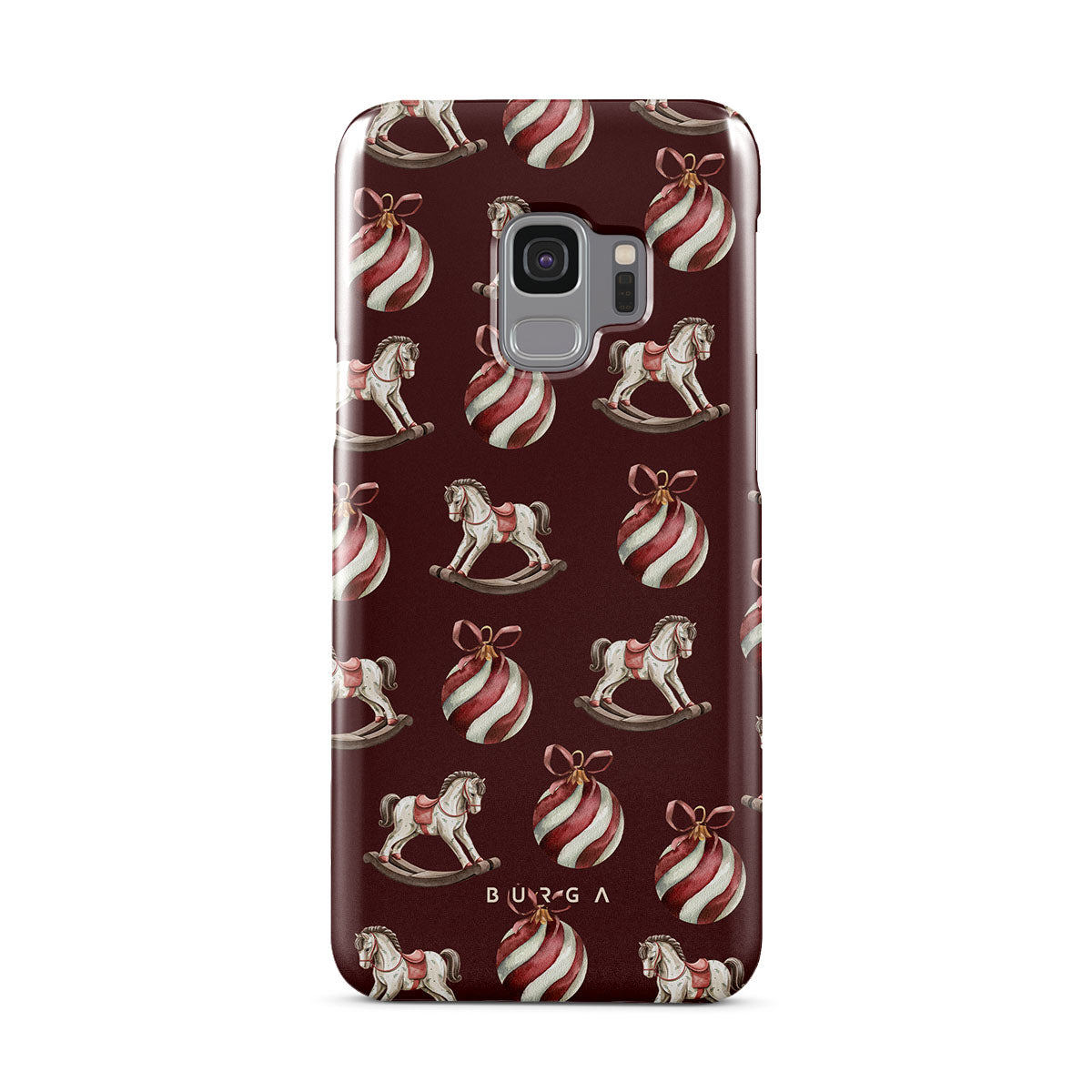 Elementi distintivi: cavallucci a dondolo, palline, rosso, decorazione natalizia