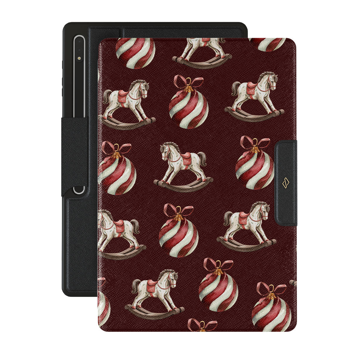Elementi distintivi: cavallucci a dondolo, palline, rosso, decorazione natalizia