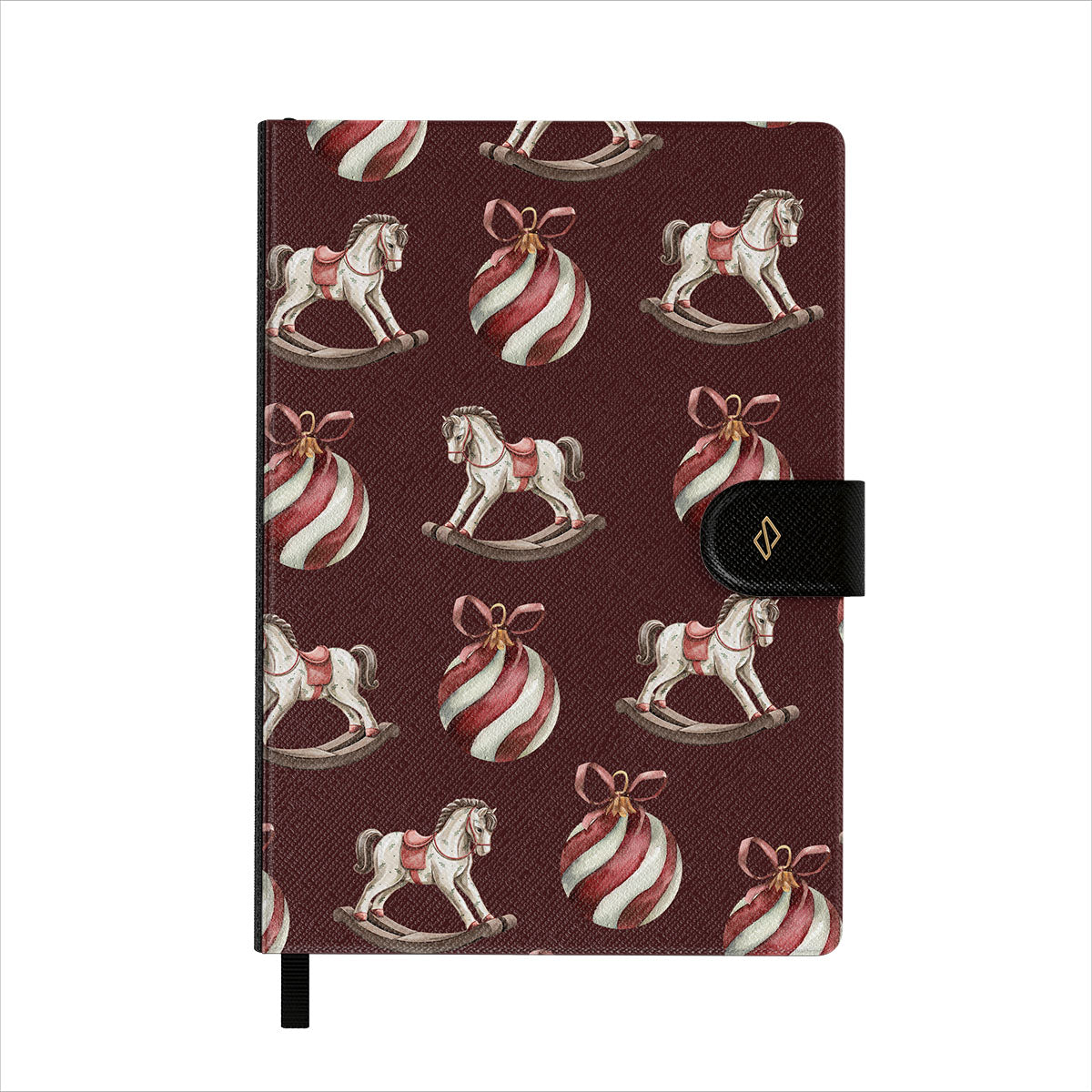 Elementi distintivi: cavallucci a dondolo, decorazioni, rosso, tema natalizio