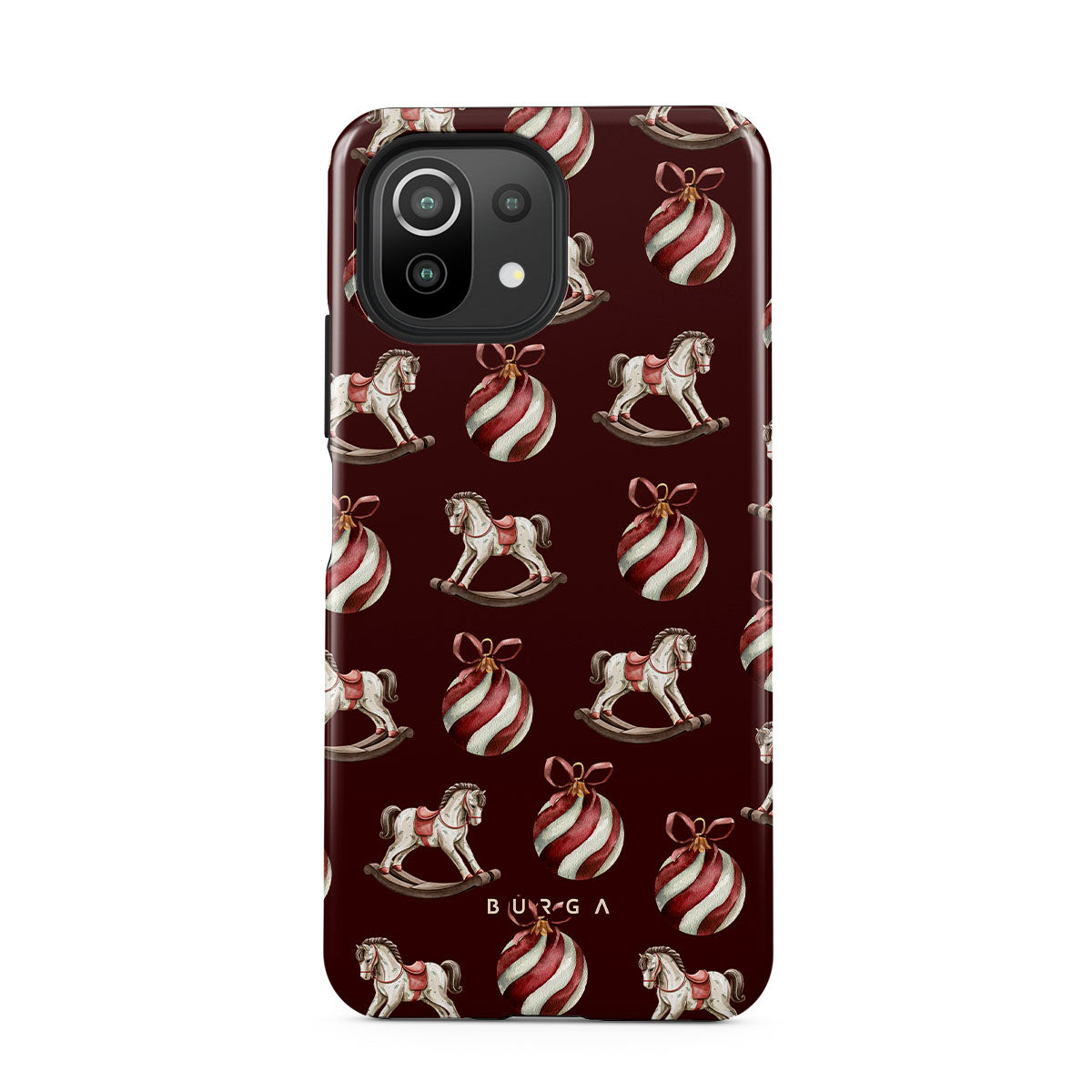 Elementi distintivi: cavallucci a dondolo, palline, rosso, decorazione natalizia