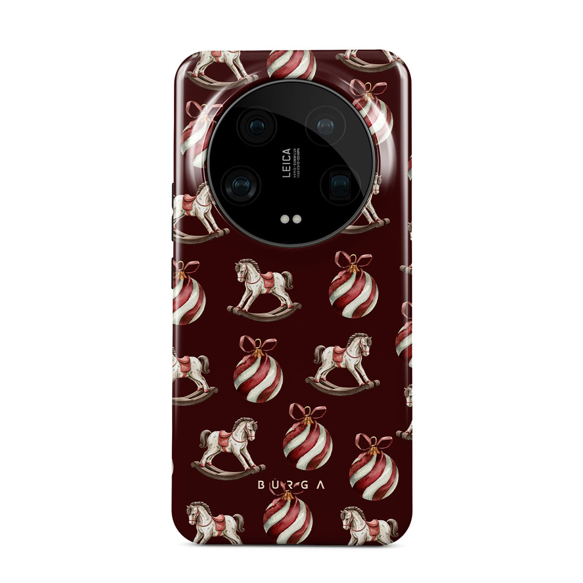 Elementi distintivi: cavallucci a dondolo, palline, rosso, decorazione natalizia