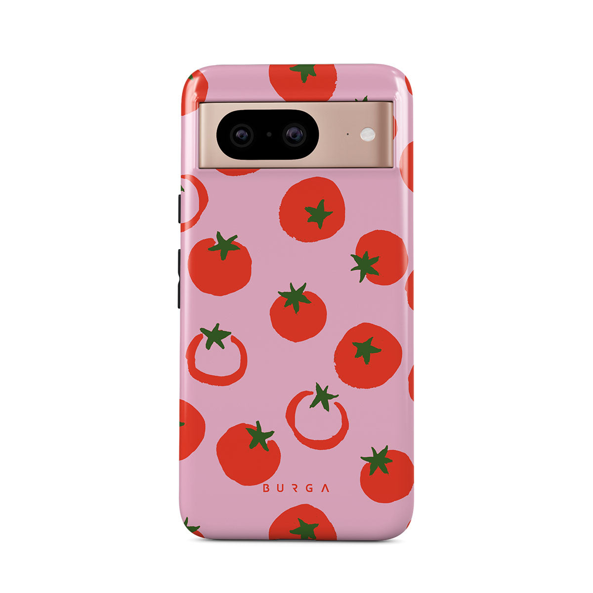 Questo design include: Pomodori, colori audaci rosso e rosa.