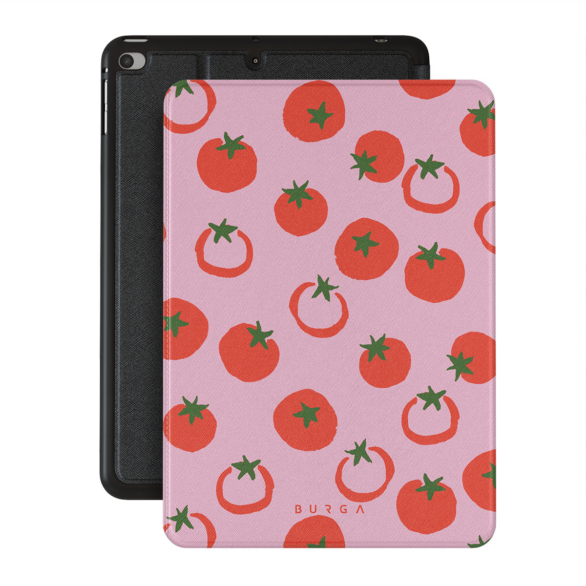 Questo design include: Pomodori, colori audaci rosso e rosa.