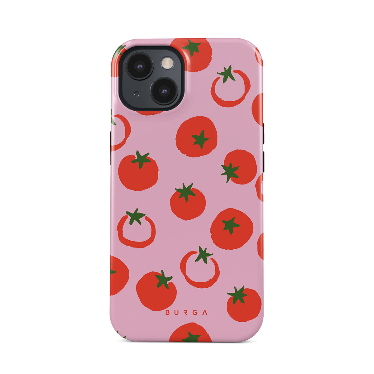 Questo design include: Pomodori, colori audaci rosso e rosa.
