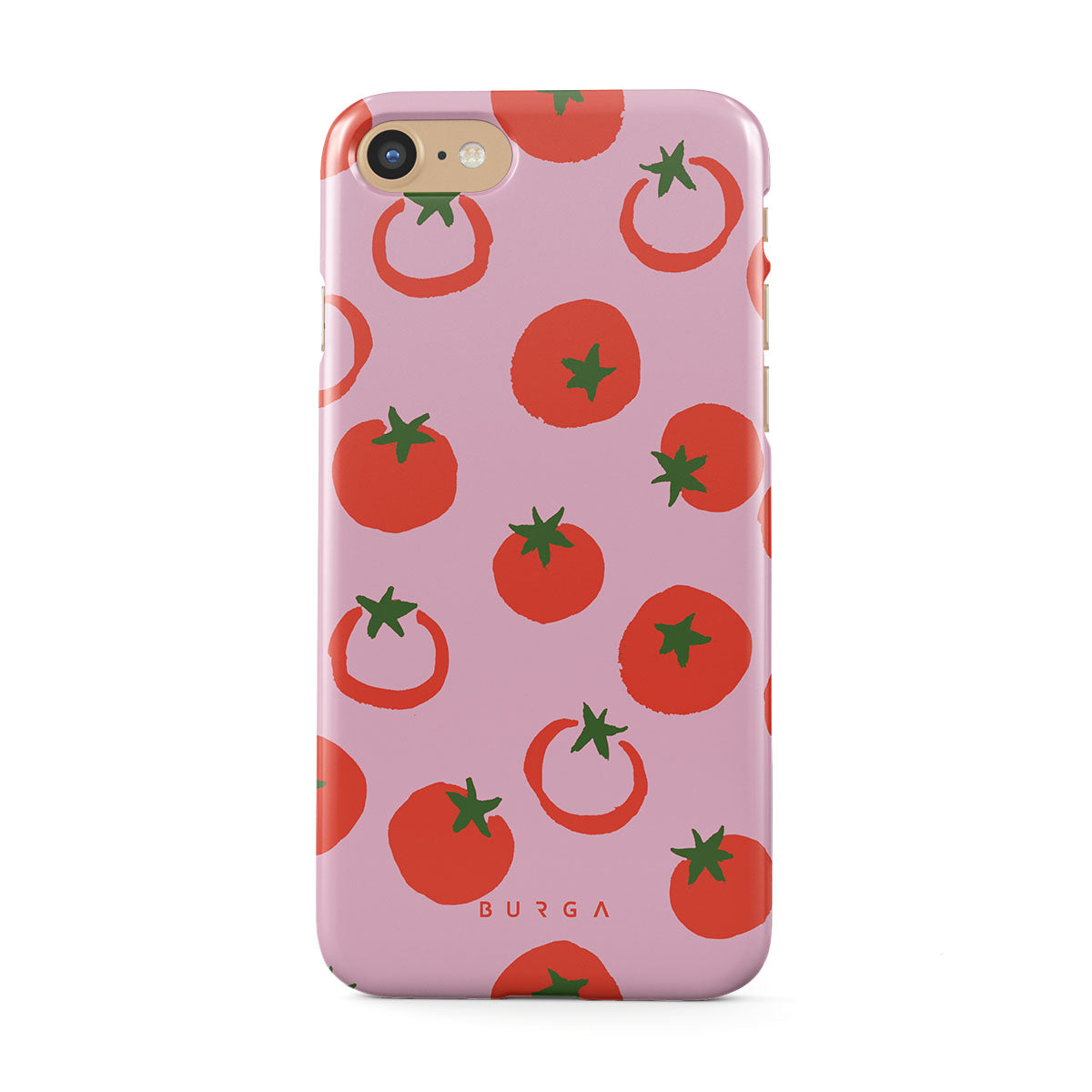 Questo design include: Pomodori, colori audaci rosso e rosa.