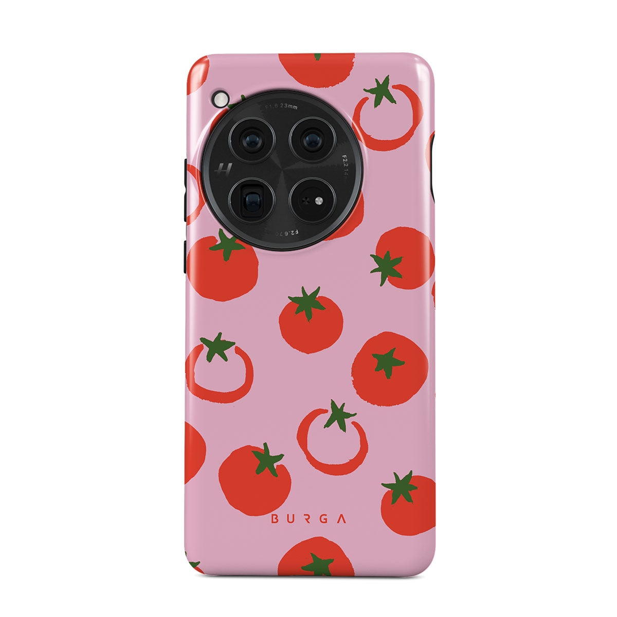 Questo design include: Pomodori, colori audaci rosso e rosa.