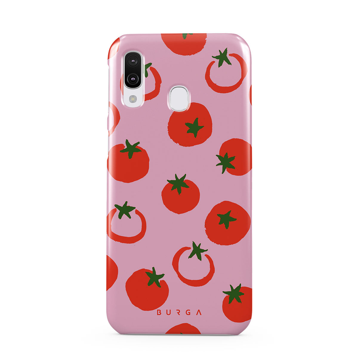 Questo design include: Pomodori, colori audaci rosso e rosa.