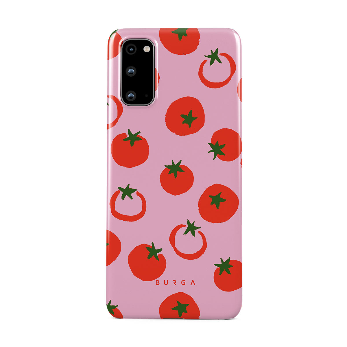 Questo design include: Pomodori, colori audaci rosso e rosa.