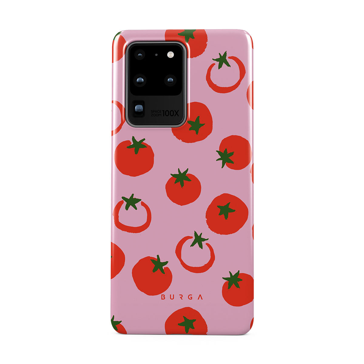 Questo design include: Pomodori, colori audaci rosso e rosa.