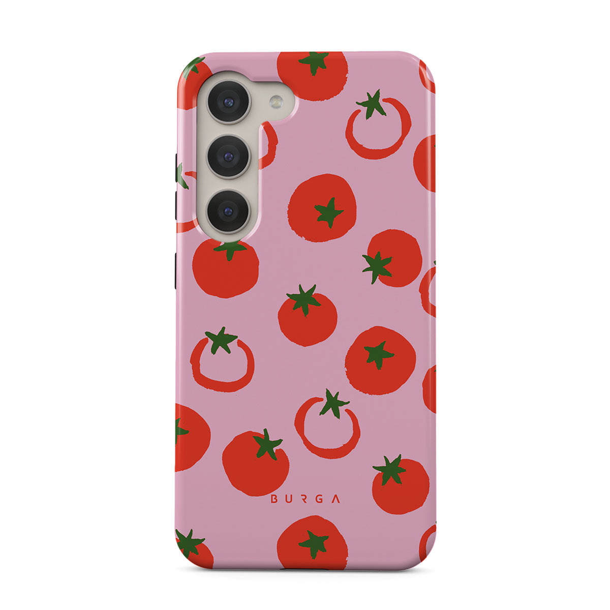 Questo design include: Pomodori, colori audaci rosso e rosa.