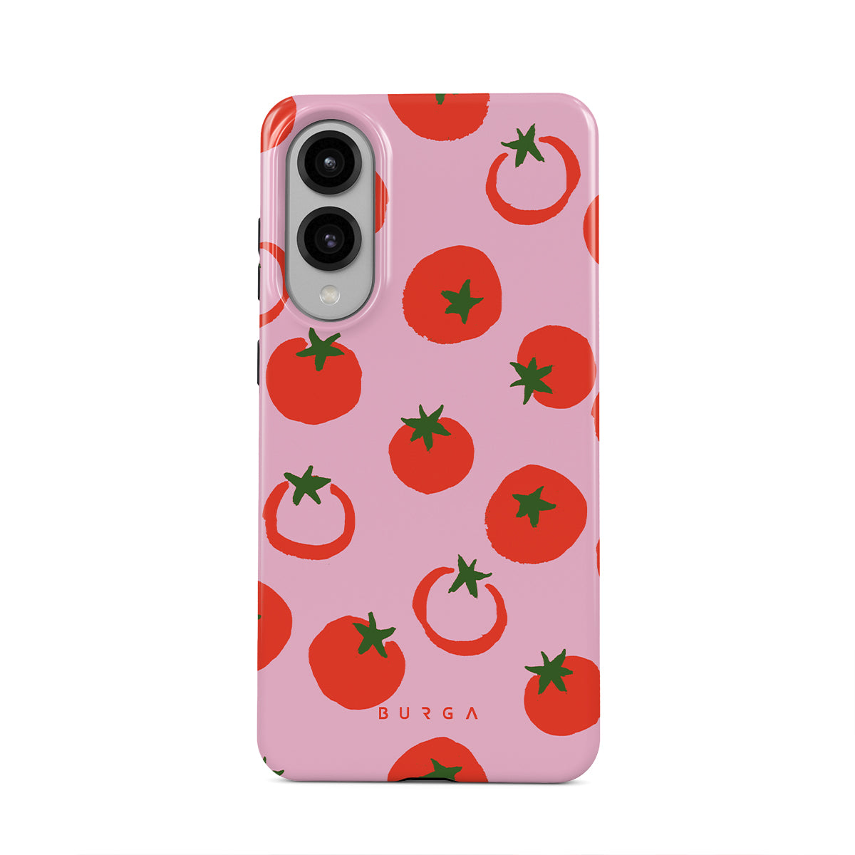 Questo design include: Pomodori, colori audaci rosso e rosa.