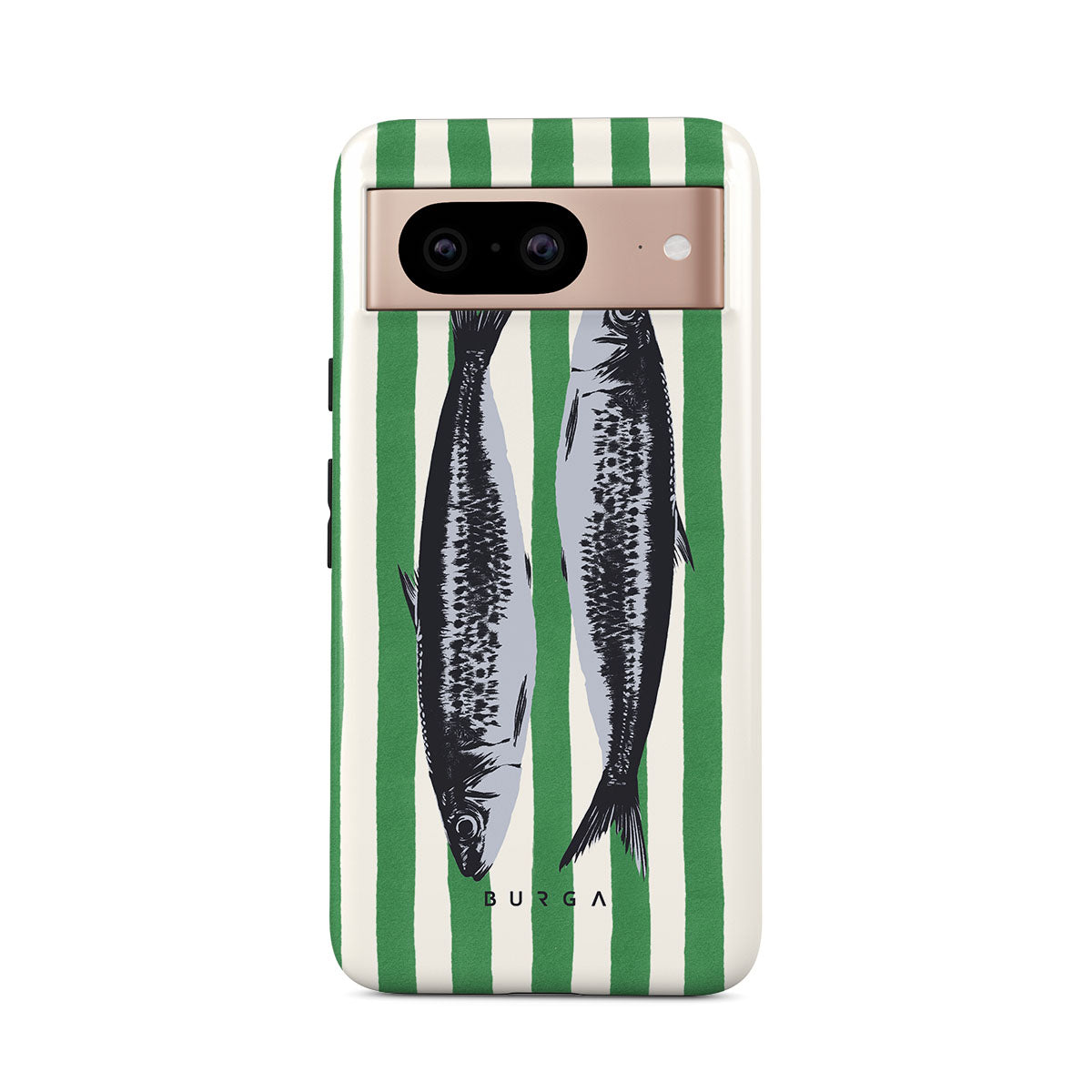 Questo design include: Sardine, strisce verdi, motivi oceanici.