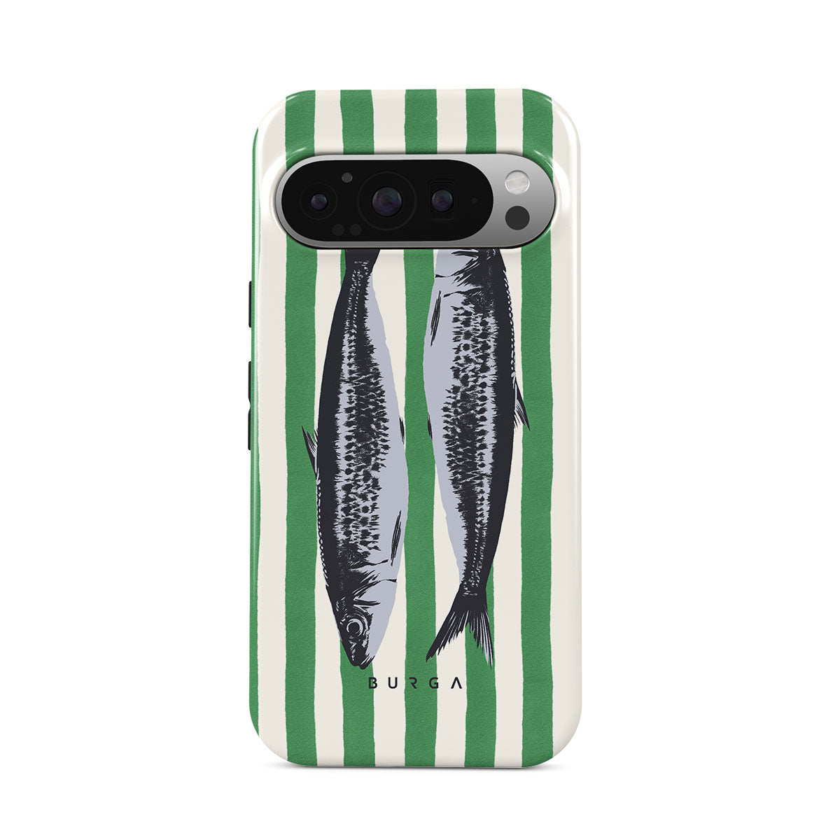 Questo design include: Sardine, strisce verdi, motivi oceanici.