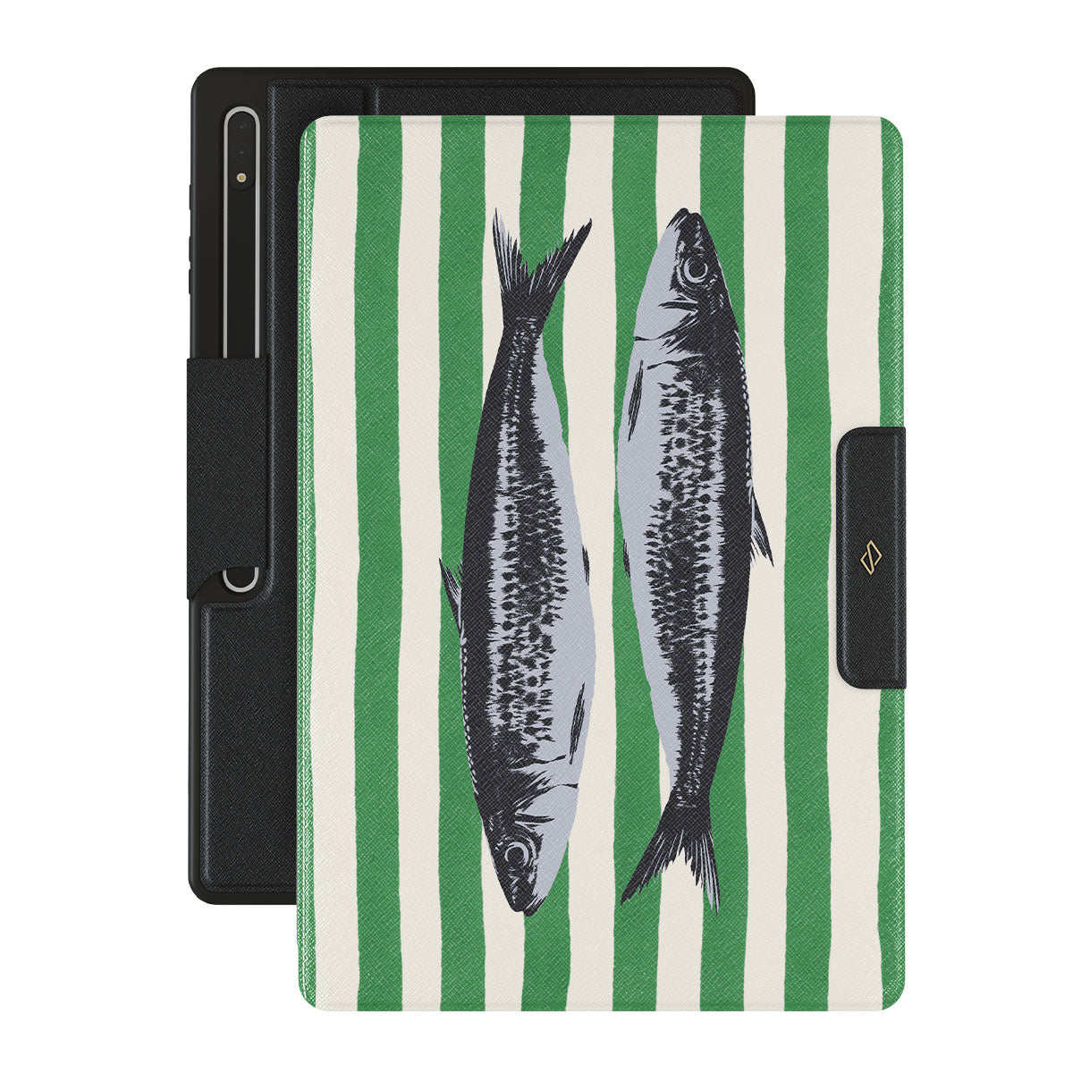 Questo design include: Sardine, strisce verdi, motivi oceanici.
