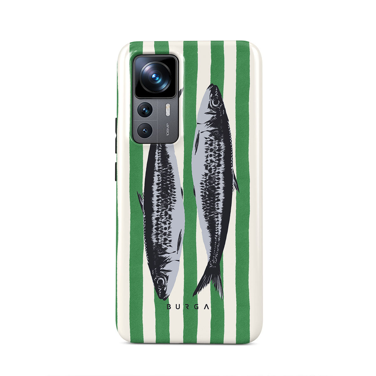 Questo design include: Sardine, strisce verdi, motivi oceanici.