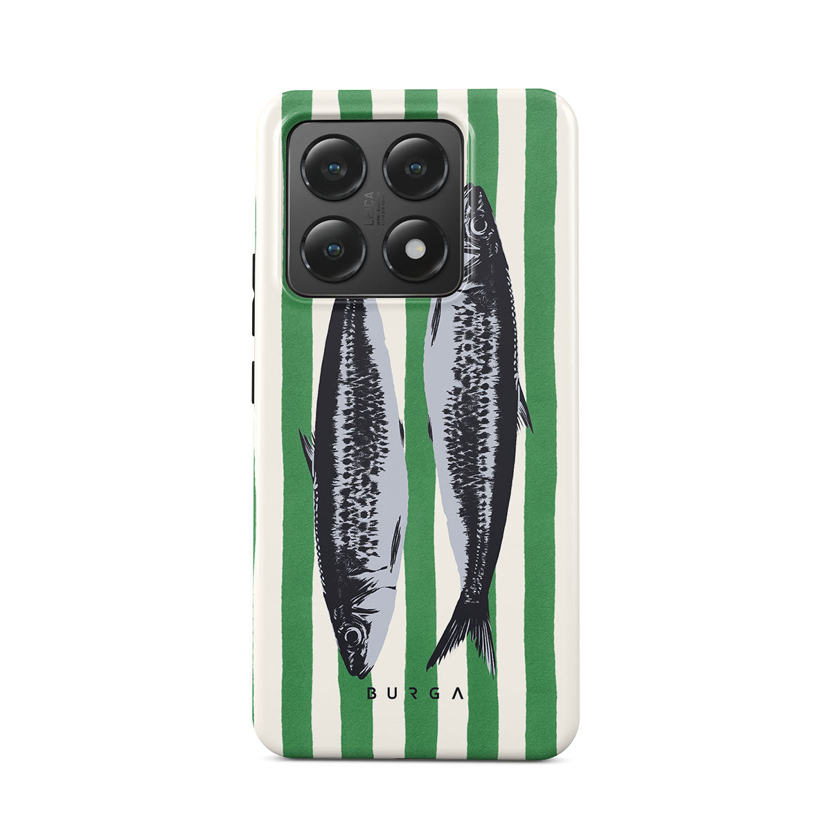 Questo design include: Sardine, strisce verdi, motivi oceanici.