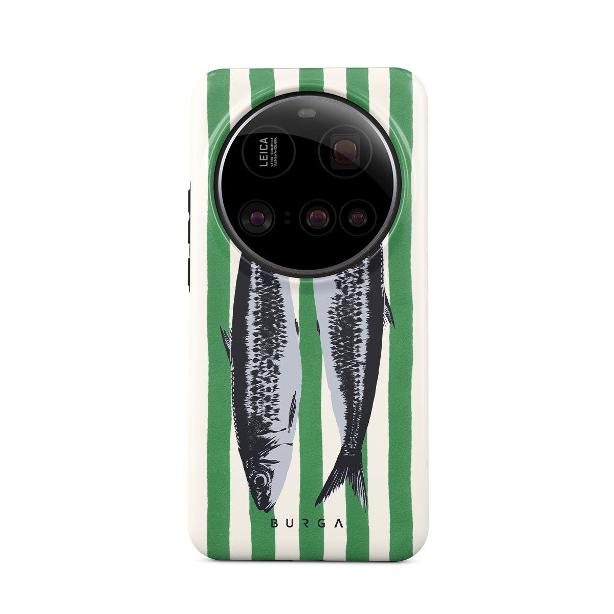 Questo design include: Sardine, strisce verdi, motivi oceanici.
