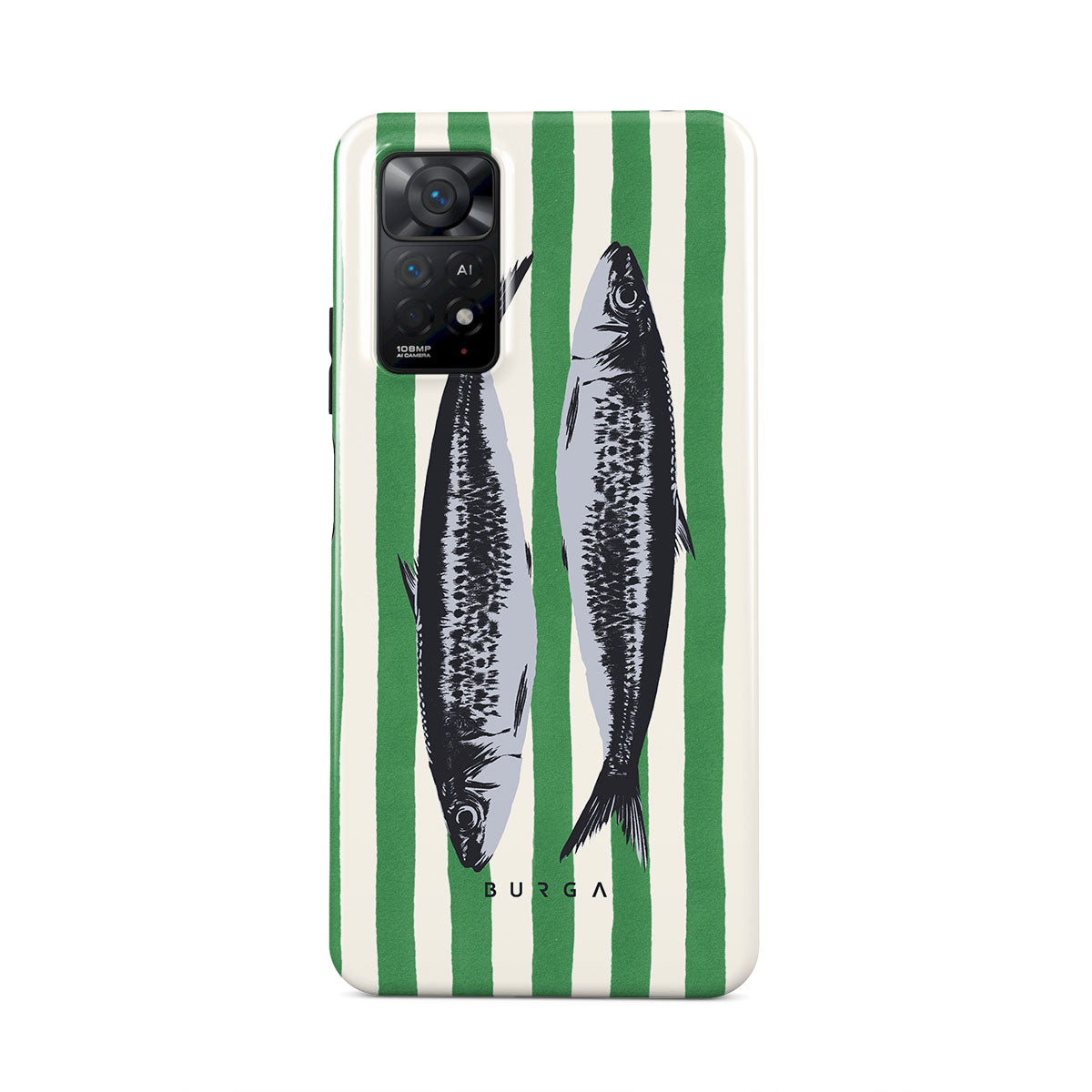 Questo design include: Sardine, strisce verdi, motivi oceanici.