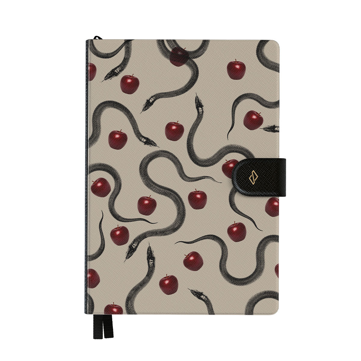 Questo design presenta: mele rosse lucide, serpenti attorcigliati, tonalità beige.