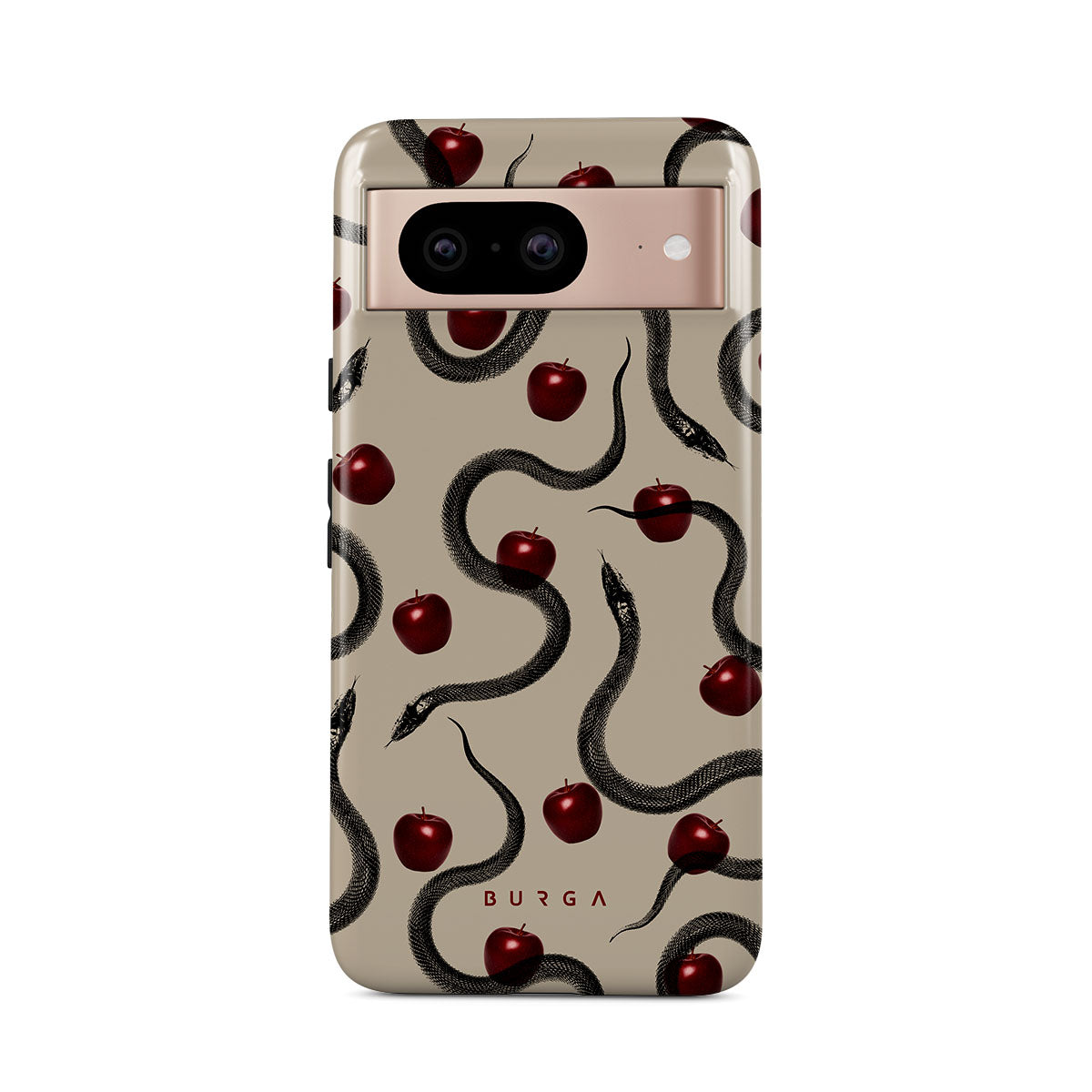Questo design presenta: mele rosse lucide, serpenti attorcigliati, tonalità beige.