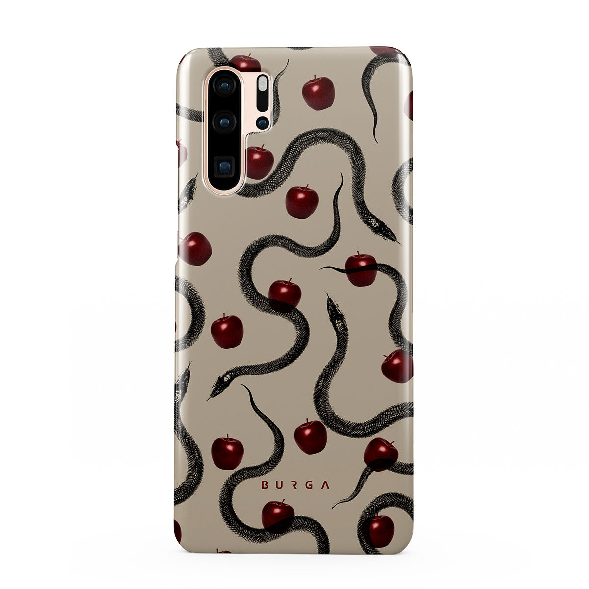Questo design presenta: mele rosse lucide, serpenti attorcigliati, tonalità beige.