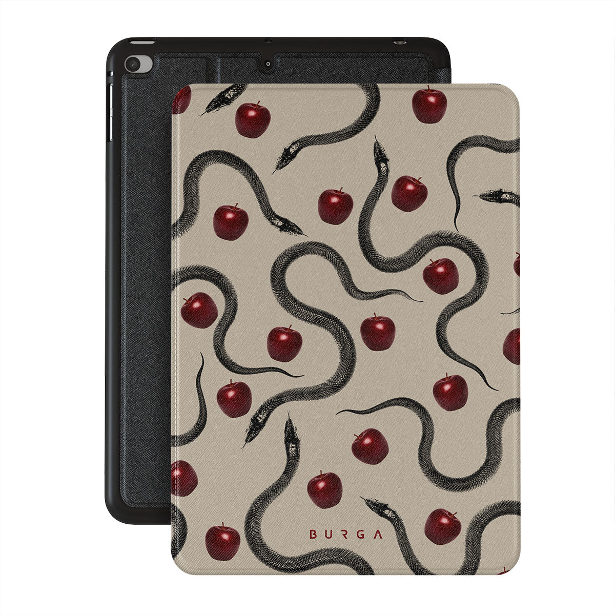 Questo design presenta: mele rosse lucide, serpenti attorcigliati, tonalità beige.